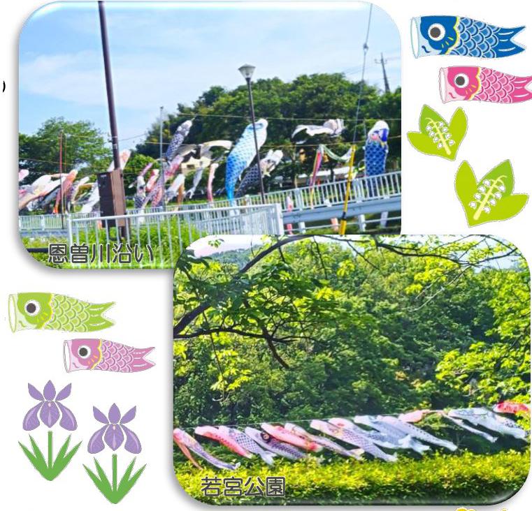 コロナ過は自粛しておりました、こいのぼり見物 でしたが、今年は5月5日に、森の里の若宮公園と恩曽川沿いのこいのぼりを車窓から見物に行きました! お天気も良く、青空の下、元気に泳ぐこいのぼりとキラキラ輝く緑のコントラストがとても綺麗でした。
