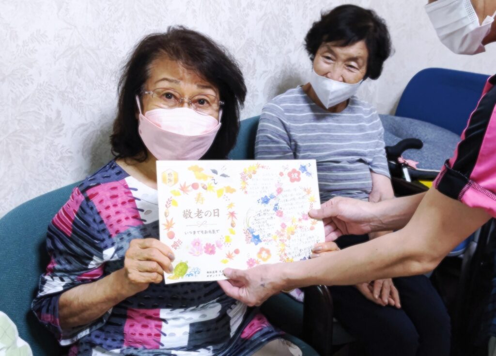 今年もサザンクラブ厚木北【 敬老週間】を9月13日~18日に行いました。スタッフからの歌のプレゼントは、日替りで「マツケンサンバⅡ」、「あゝ人生に涙あり」を歌わせて頂きました。皆様ノリノリで参加して頂きありがとうございました。恒例の手作りカードは日頃の感謝を込めてスタッフ全員からのメッセージ入りです♪