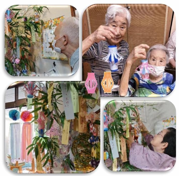 サザンクラブ厚木北では、毎年、庭の笹に七夕飾りや短冊を利用者様に作っていただき施設内の目立つ場所に飾り付けています。昨年好評だった吹き流しも作りました。素敵な飾りや個々の願い事を書いて頂いた短冊が、たくさん出来上がりました。