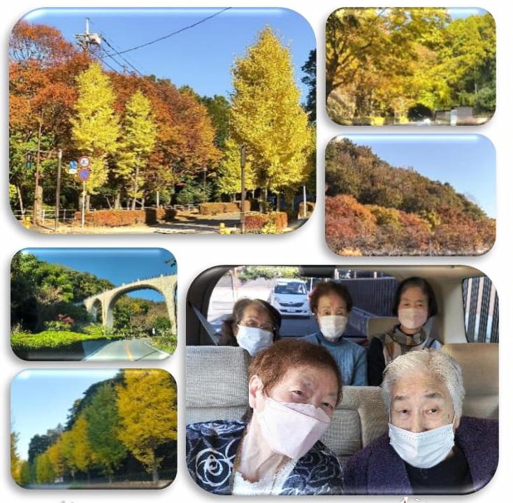 紅葉狩りドライブでは、七沢と森の里へ出かけ、秋ならではの景色をたっぷり満喫しました。森の里では、黄金色に染まった銀杏並木が見事で、思わず歓声があがるほど。つかの間の秋晴れに恵まれ、青空と紅葉のコントラストも美しく、車窓から眺めるだけでも心が晴れやかになりました。七沢ではクマの目撃情報があり少し心配しましたが、出会うこともなく、安心してドライブを楽しむことができました。今年は例年より早く気温が下がったため、紅葉も早めの色づきとなり、鮮やかな秋の風景をゆっくり堪能できた良いひとときとなりました。