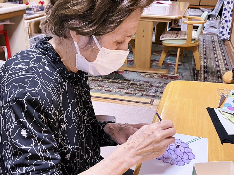 専門講師による音楽教室、お習字(毛筆)、フラダンス、手芸、クラフト製作などの文化・教育講座が充実しています。また、毎日音楽の先生が来て音楽療法を行っています。懐かしい昭和の歌謡曲を歌ったり、音楽に合わせて様々な楽器を演奏したり、喜びをメロディーやリズムにのって身体を動かし表現したりします。